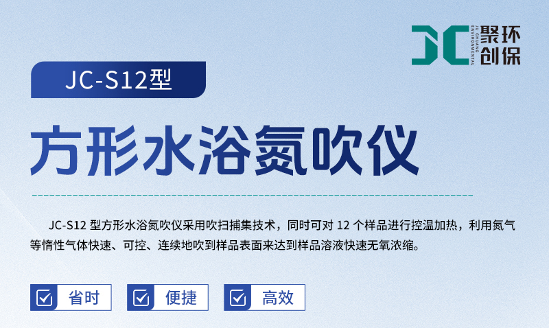 聚创JC - S12/S24型方形水浴氮吹仪运用水浴恒温加热的模式,把氮气以快速、连续且可控的状态吹向加热后的样品表面,以此实现对样品的浓缩。该方法具备省时、操作便捷以及易于掌控的特点。