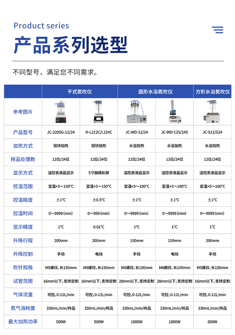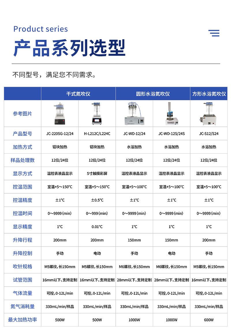 ① 12位处理:JC-220A可视(可以观察试管内的样品液面,方便实验)、JC-220SG-12、H-L212C、JC-S12、JC-WD-12、JC-WD-12S、JC-D12。
