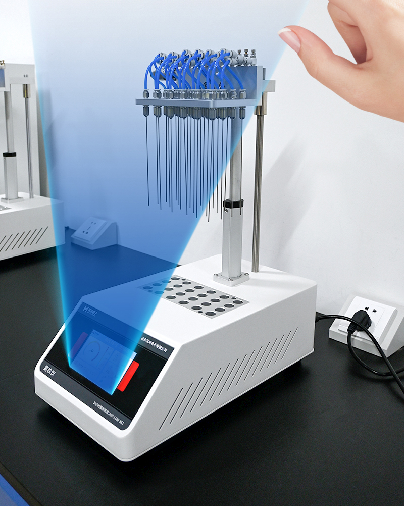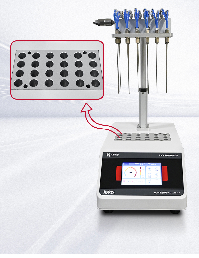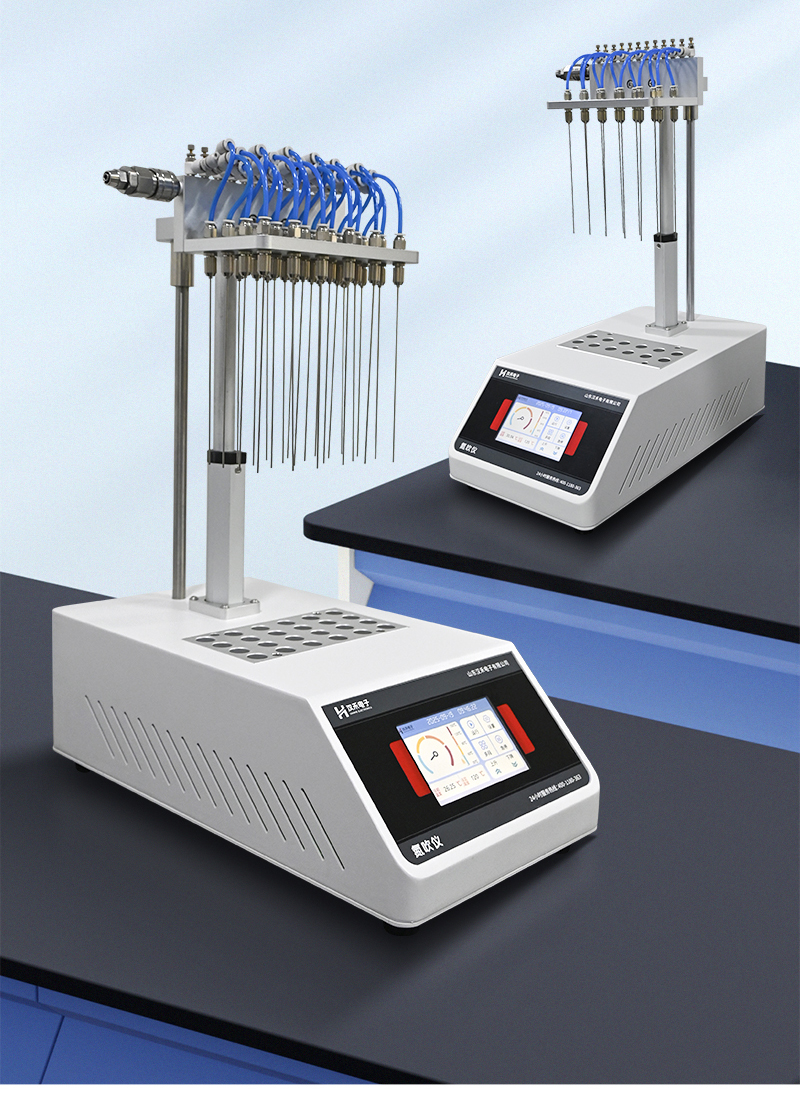2. 独立氮吹操作:配备12位/24位独立氮气控制系统,使得每个样品都能单独开展通气操作。这不仅有效避免了样品之间的交叉污染,还能通过精确控制氮气流速,切实保障实验安全、高效地完成。无论是少量样品还是大量样本的处理,都能满足实验需求。